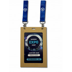 - Porte badge au format A6 pour badges bristol ou papier A4 plié en 4